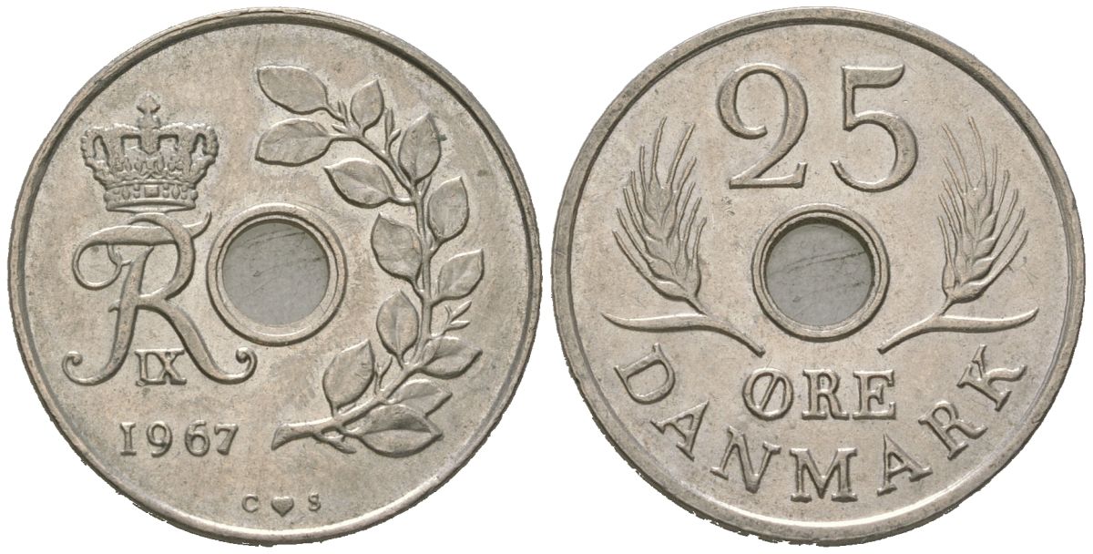 Дания 25 эре 1967 С; S, Фредерик IX (1947-1972) KM 850 медно-никель 4619-552