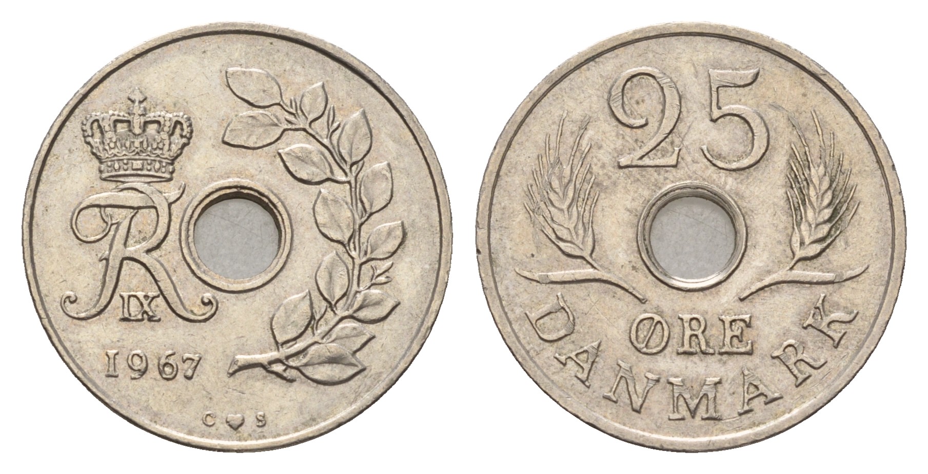 Дания 25 эре 1967 С; S, Фредерик IX (1947-1972) KM 855.1 медно-никель 4681-354