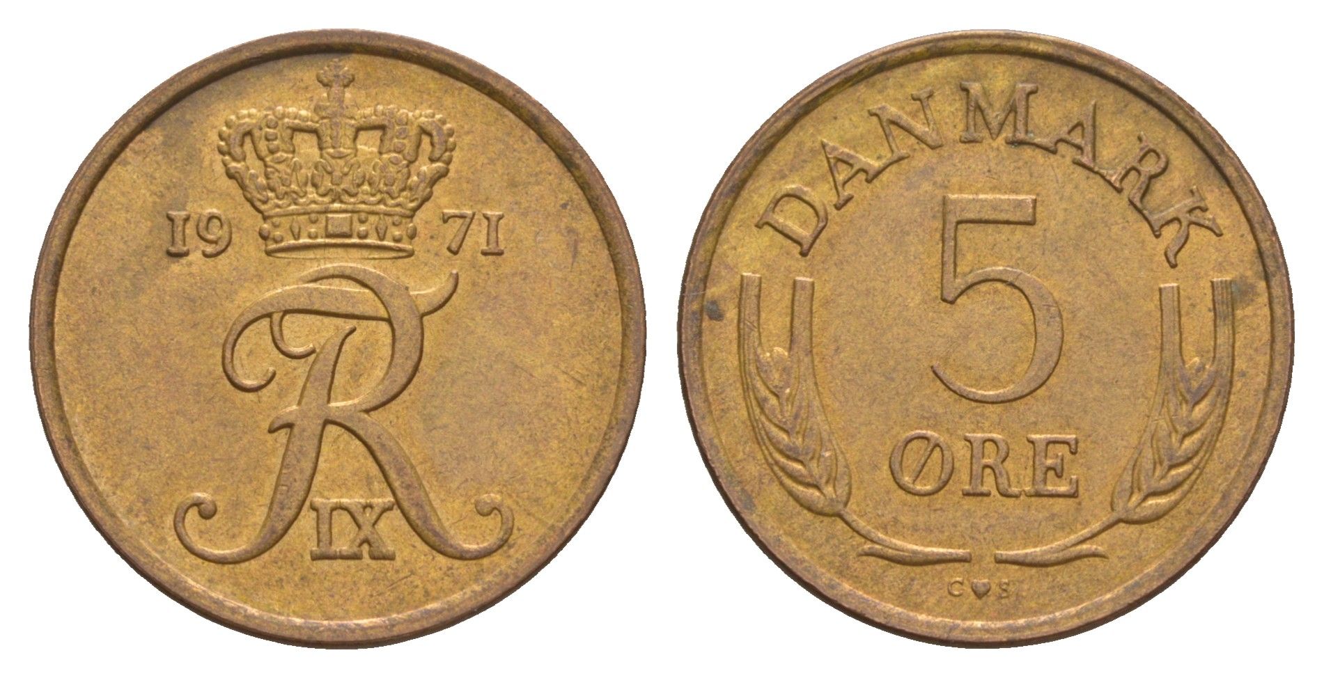 Дания 5 эре 1971 C, Фредерик IX (1947-1972) KM 848 бронза 4657-313