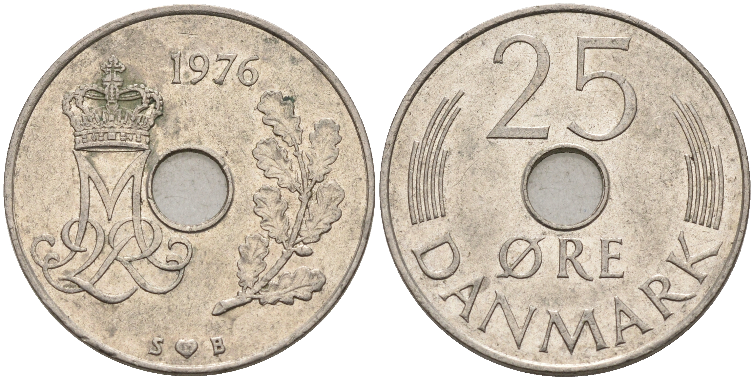 Дания 25 эре 1976 S; B, Маргрете II (1972- ) KM 861.1 медно-никель 4566-544