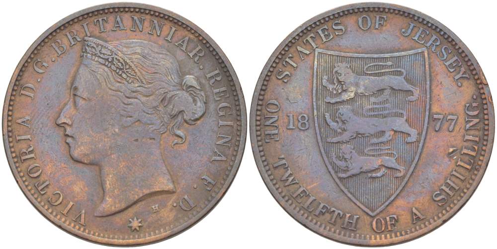 ДЖЕРСИ 1/12 ШИЛЛИНГА 1877 ВИКТОРИЯ KM 8 бронза 4517-1016