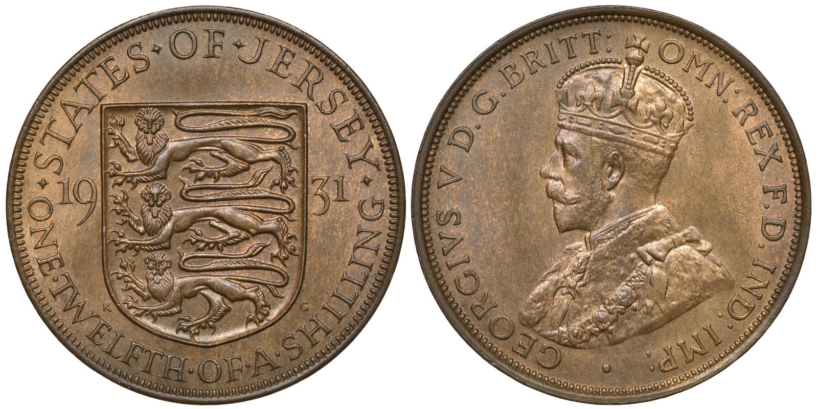ДЖЕРСИ 1/12 ШИЛЛИНГА 1931 ГЕОРГ V KM 16 бронза UNC 650-322