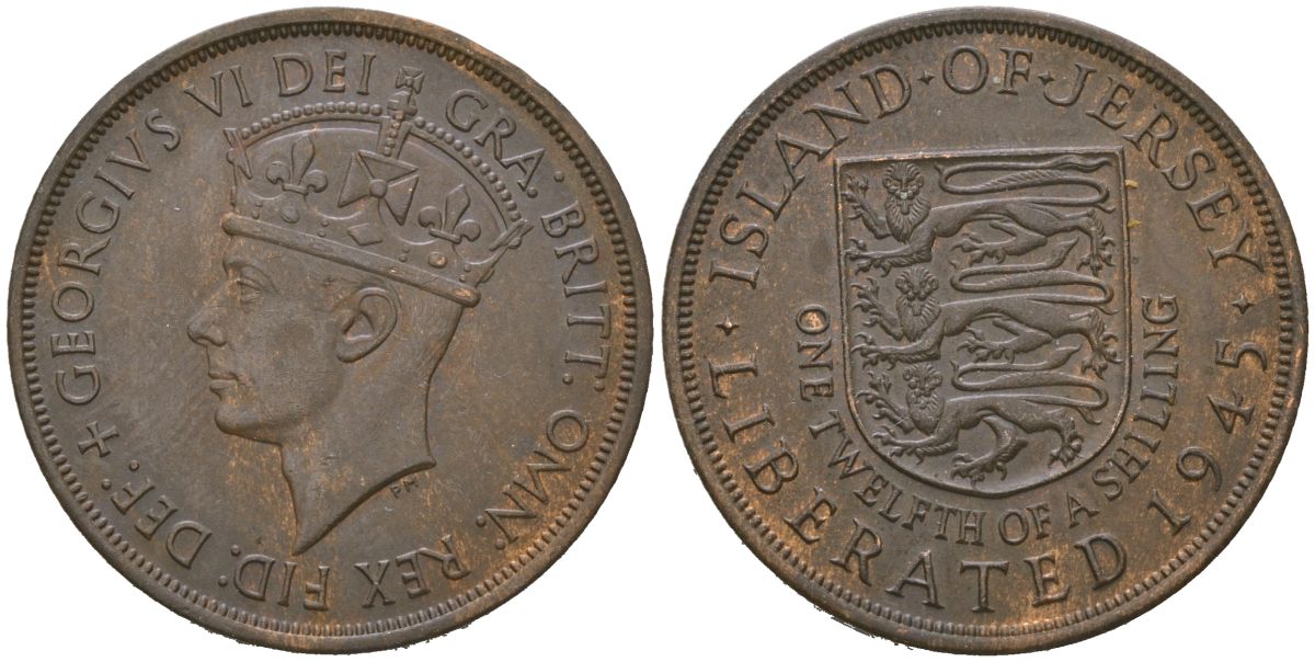 Джерси 1/12 шиллинга 1945 Георг VI (1936-1952) KM 18 бронза aUNC 4619-646