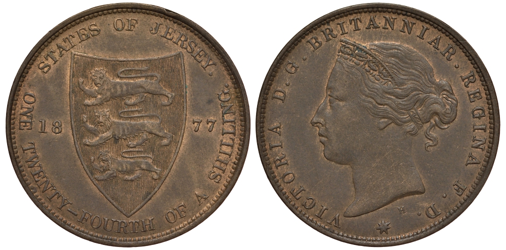 ДЖЕРСИ 1/24 ШИЛЛИНГА 1877 H ВИКТОРИЯ (1837-1901) KM 7 бронза 650-441