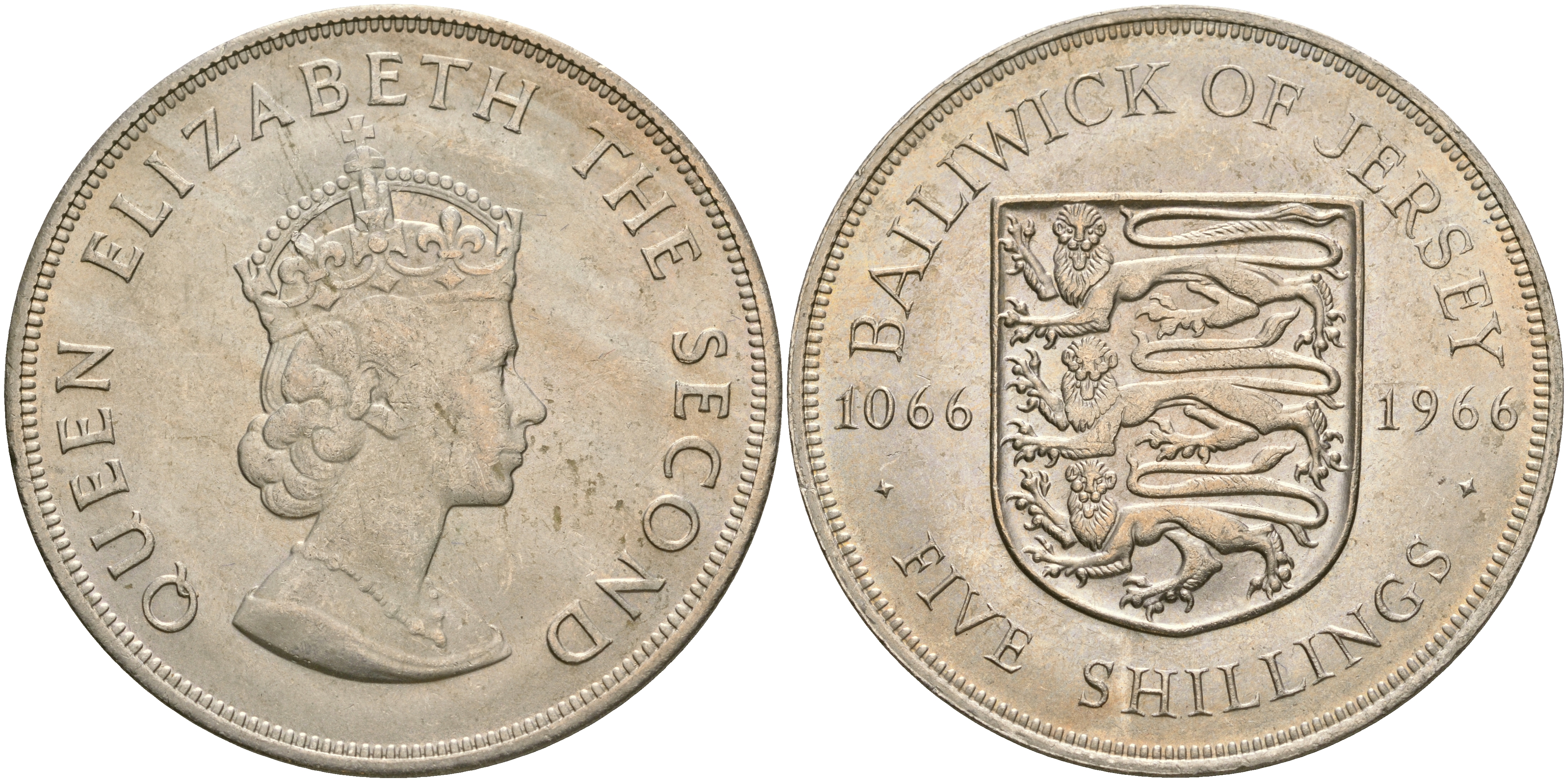 Джерси 5 шиллингов 1966 900 лет Нормандскому завоеванию KM 28 медно-никель UNC 118-612