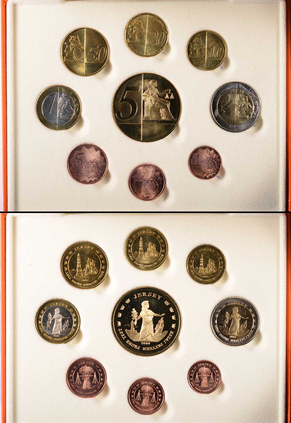 Джерси евронабор из 9 монет (с 5 евро) 2004 пробники, PROBA, в оригинальной коробке, с сертификатом PROOF 6-5-3-47