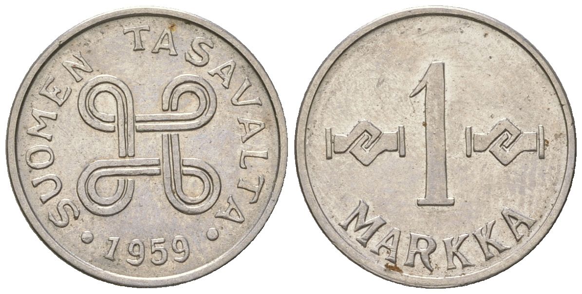 Финляндия 1 марка 1959 KM 36a сталь плакированная железом 4173-1254