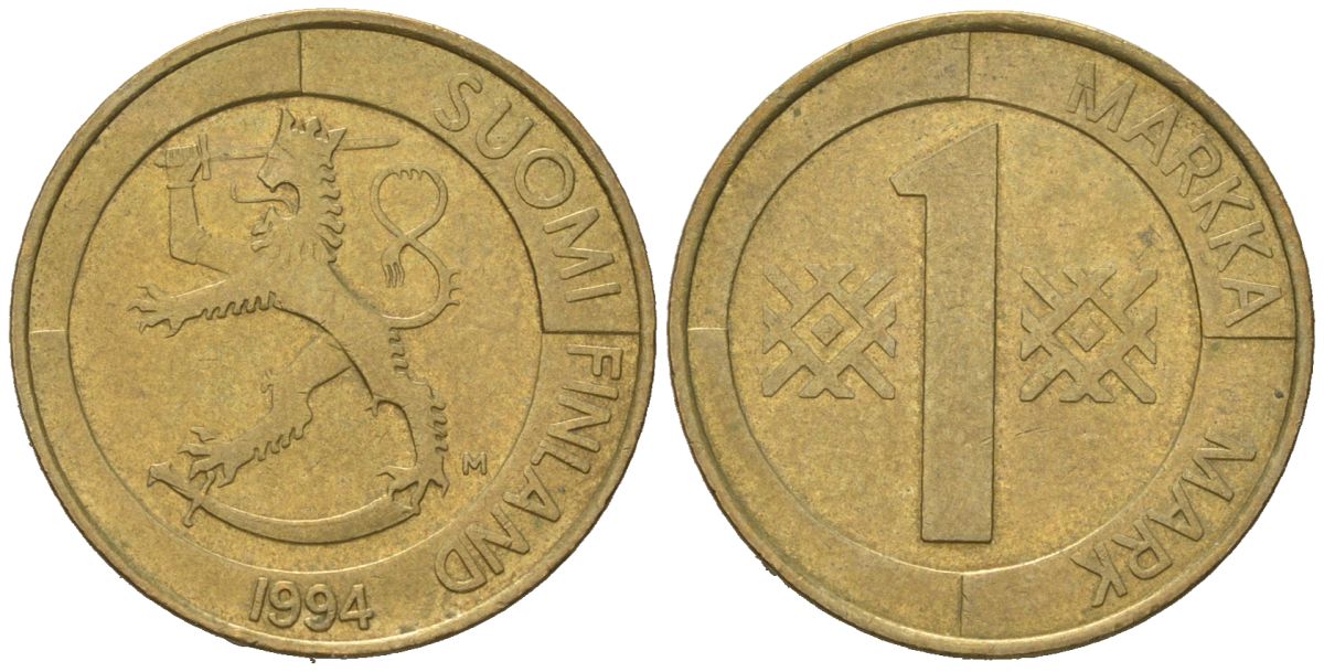 Финляндия 1 марка 1994 M KM 76 алюминиевая бронза 92-113