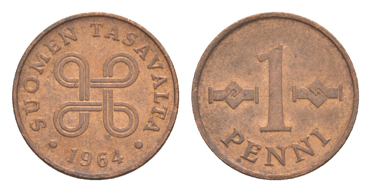 Финляндия 1 пенни 1964 KM 44 медь 4647-229
