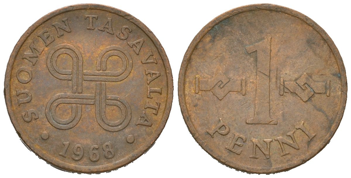 Финляндия 1 пенни 1968 KM 44 медь 4618-512