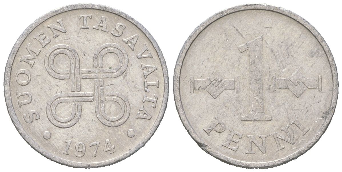 Финляндия 1 пенни 1974 KM 44a алюминий 4618-218