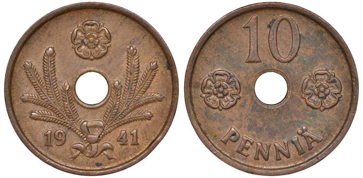 Финляндия 10 пенни 1941 KM 33.1 медь 51-3552