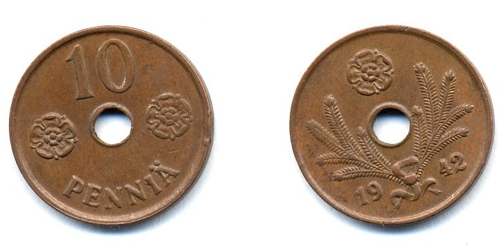 ФИНЛЯНДИЯ 10 ПЕННИ 1942 KM 33.1 медь 51-4966
