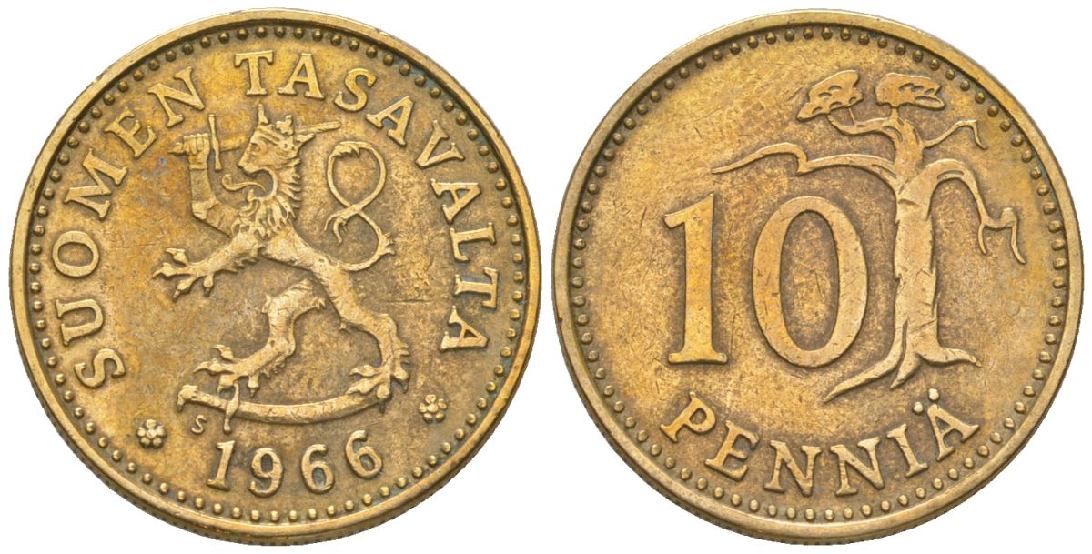 Финляндия 10 пенни 1966 S KM 46 алюминиевая бронза 4174-921