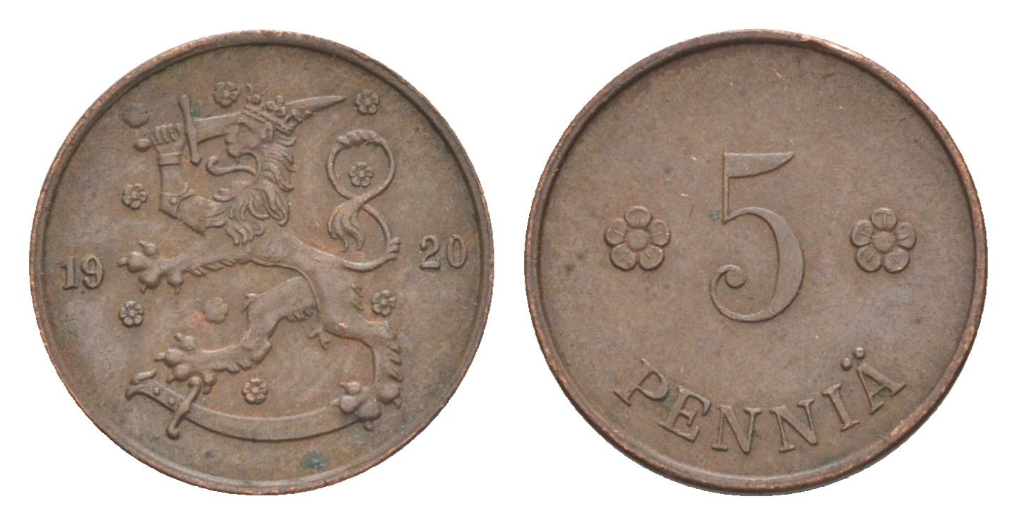 Финляндия 5 пенни 1920 KM 22 медь 4636-427