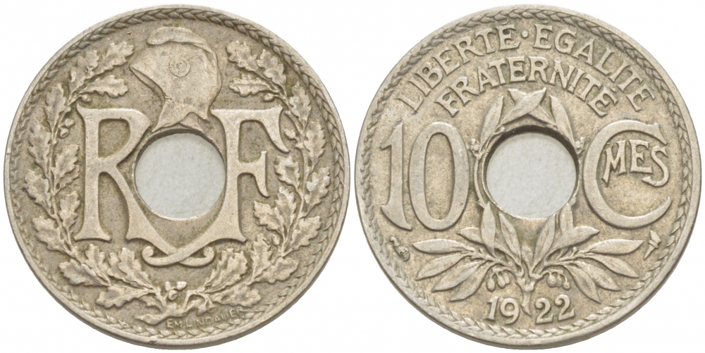 ФРАНЦИЯ 10 САНТИМОВ 1922 ТИП ЛИНДАЙЁ KM 866а медно-никель 4402-743
