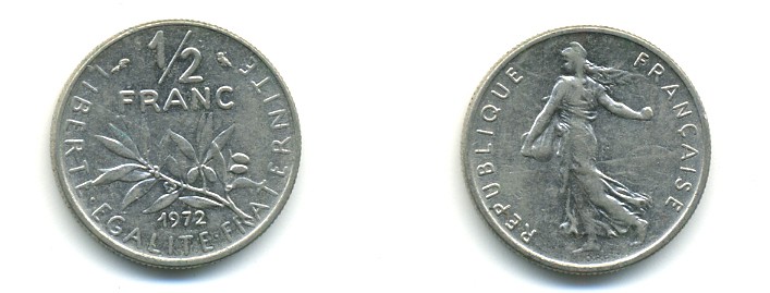 Франция 1/2 франка 1972 сеятель KM 931.1, LE FRANC 198.11 никель 80-869