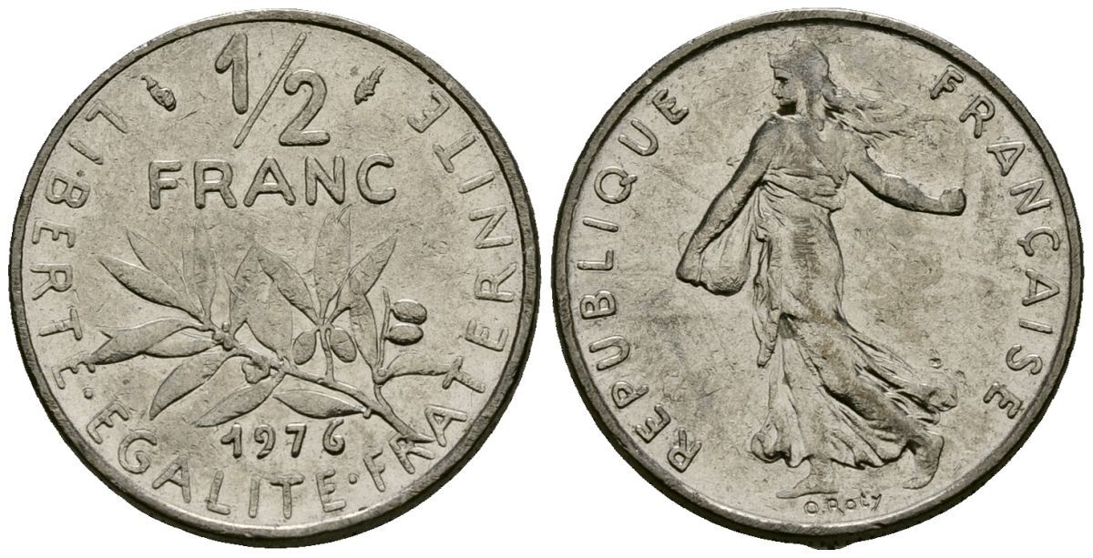 Франция 1/2 франка 1976 сеятель KM 931 никель 4135-711