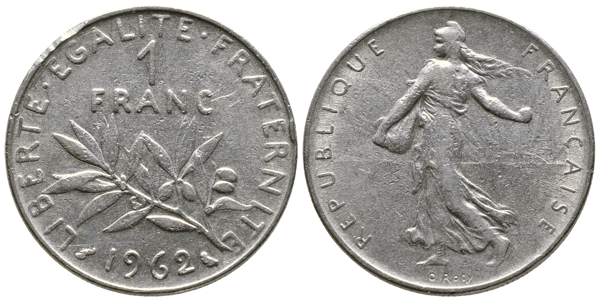 ФРАНЦИЯ 1 ФРАНК 1962 СЕЯТЕЛЬ KM 925.1 никель 93-1436