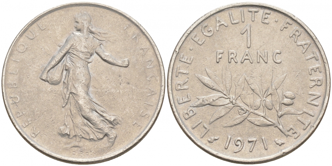ФРАНЦИЯ 1 ФРАНК 1971 СЕЯТЕЛЬ KM 925.1 никель 186-341