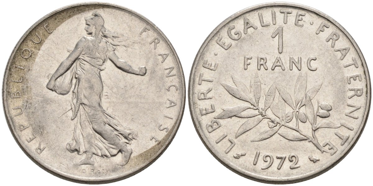 Франция 1 франк 1972 сеятель KM 925.1 никель 4575-154