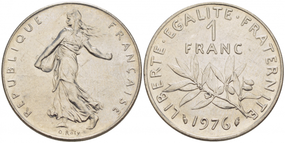 ФРАНЦИЯ 1 ФРАНК 1976 СЕЯТЕЛЬ KM 925.1 никель 213-1213