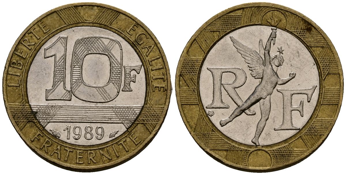 Франция 10 франков 1989 тип гений Бастилии KM 964.1, Le Franc 375.3 биметалл 4138-324