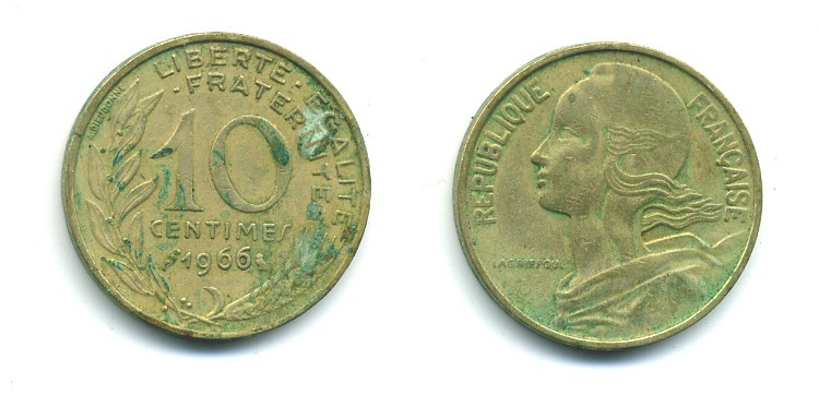 ФРАНЦИЯ 10 САНТИМОВ 1966 ТИП MARIANNE KM 929 медь алюминий никель 84-1612