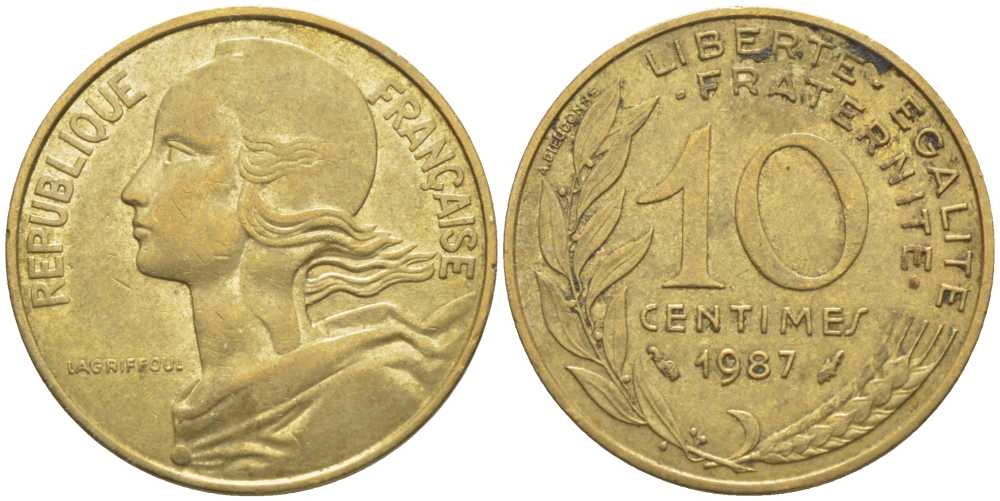 ФРАНЦИЯ 10 САНТИМОВ 1987 ТИП MARIANNE KM 929, LE FRANC 144.27 медь алюминий никель 116-266