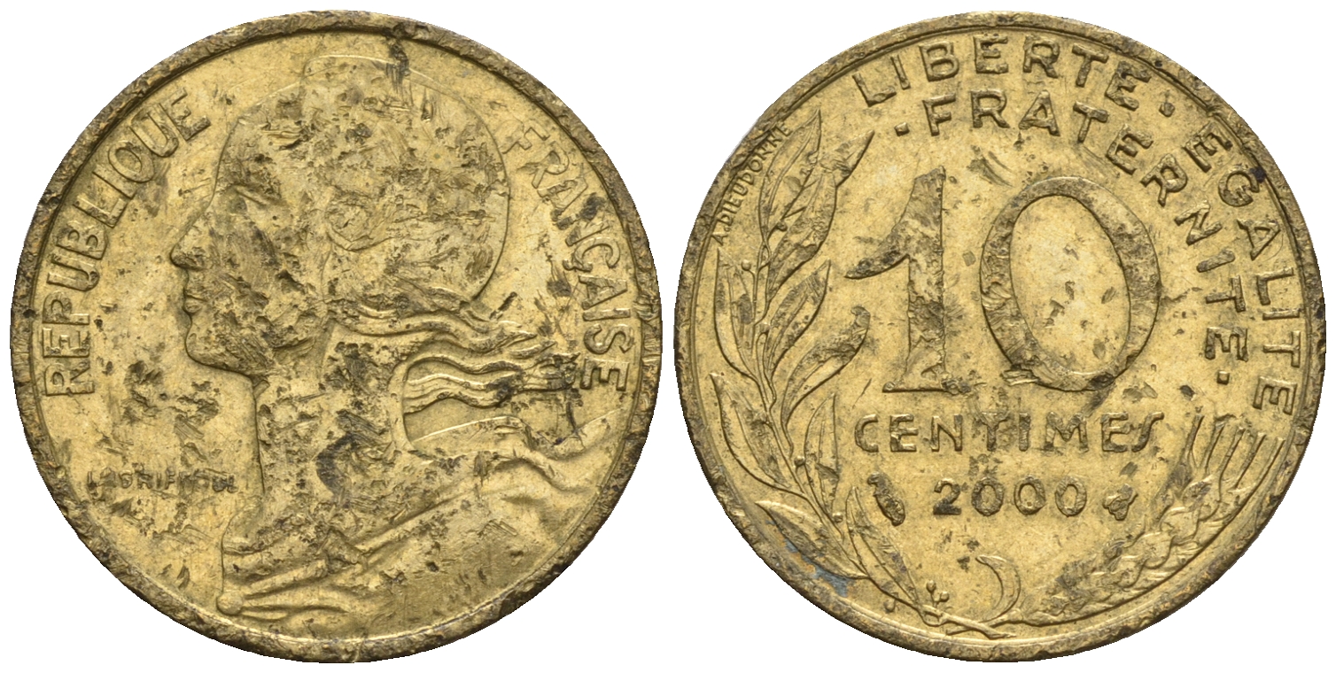 ФРАНЦИЯ 10 САНТИМОВ 2000 KM 929 медь алюминий никель 4609-314