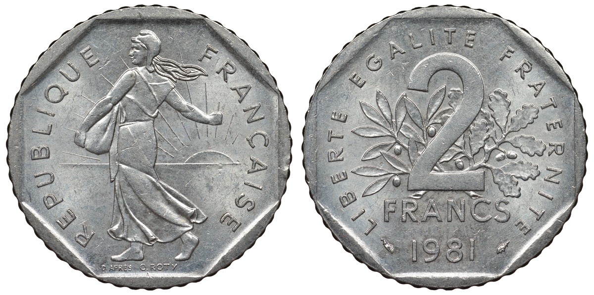 Франция 2 франка 1981 сеятель KM 942.1, Le Franc 272.5 никель 4123-426
