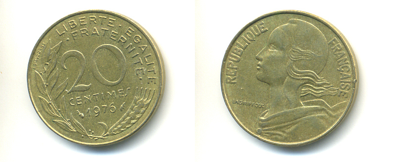 ФРАНЦИЯ 20 САНТИМОВ 1976 KM 930 медь алюминий никель 86-1737