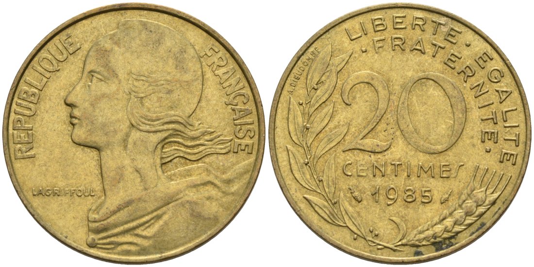 ФРАНЦИЯ 20 САНТИМОВ 1985 ТИП MARIANNE KM 930, LE FRANC 156.25 медь алюминий никель 4573-1052