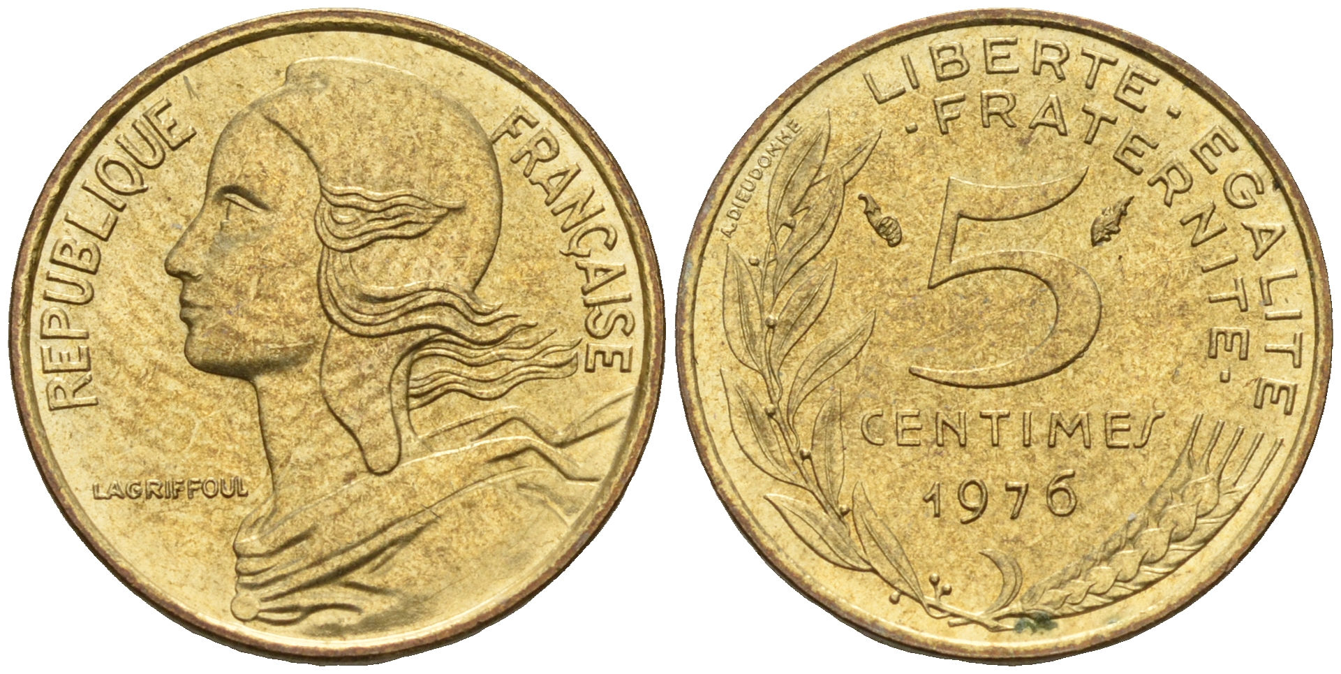 Франция 5 сантимов 1976 тип Марианна KM 933 медь алюминий никель 4152-1226