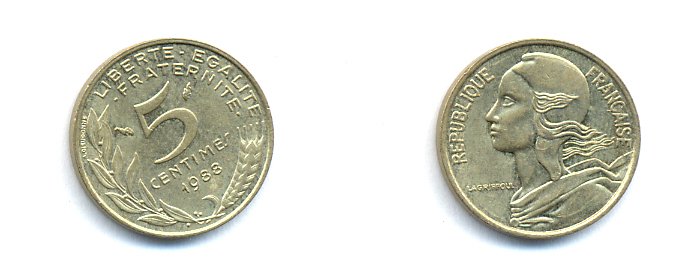 ФРАНЦИЯ 5 САНТИМОВ 1988 ТИП MARIANNE KM 933 медь алюминий никель 4379-566