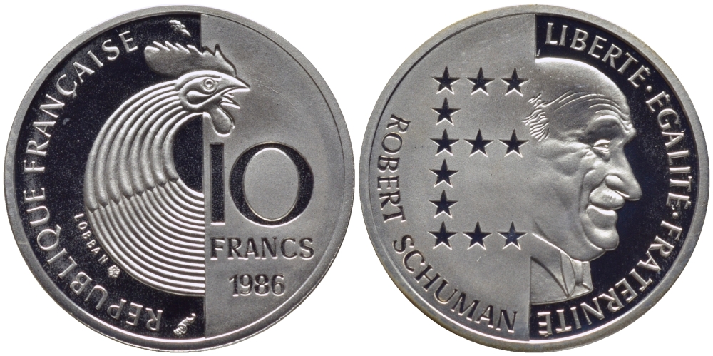 Франция 10 франков 1986 100 лет со дня рождения Роберта Шумана, в оригинальной коробке, тираж 6000 ЭКЗ. KM 958b серебро PROOF 2-5-2-14