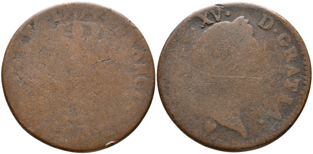 ФРАНЦИЯ 1 СУ 1771 V, ЛЮДОВИК XV (1715-1774) KM 545 медь 32-241