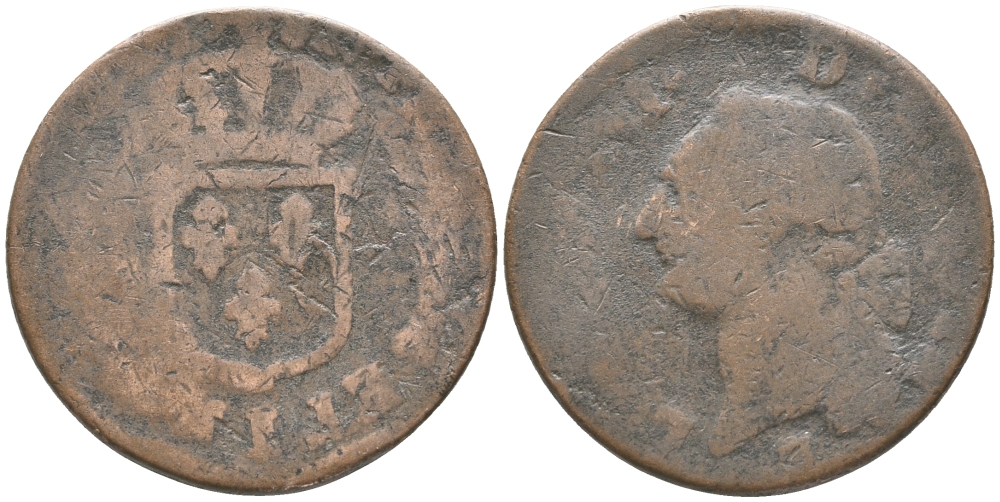 ФРАНЦИЯ 1 СУ 1782 ЛЮДОВИК XVI (1774-1793) KM 578 медь 32-624