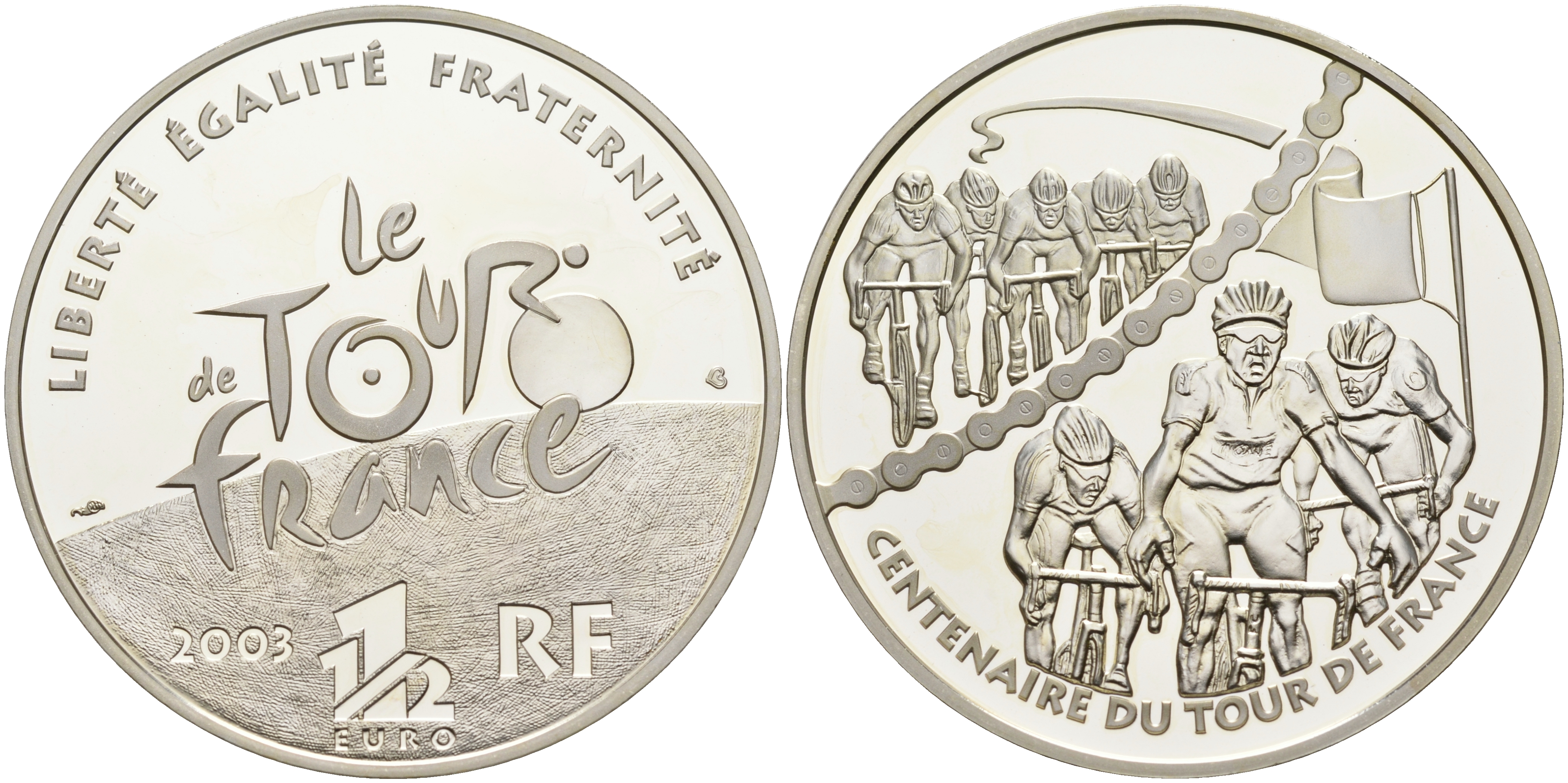 ФРАНЦИЯ 1 1/2 ЕВРО 2003 100 ЛЕТ ТУР ДЕ ФРАНС ( 1903-2003) KM 1324 серебро PROOF 1095-3-51