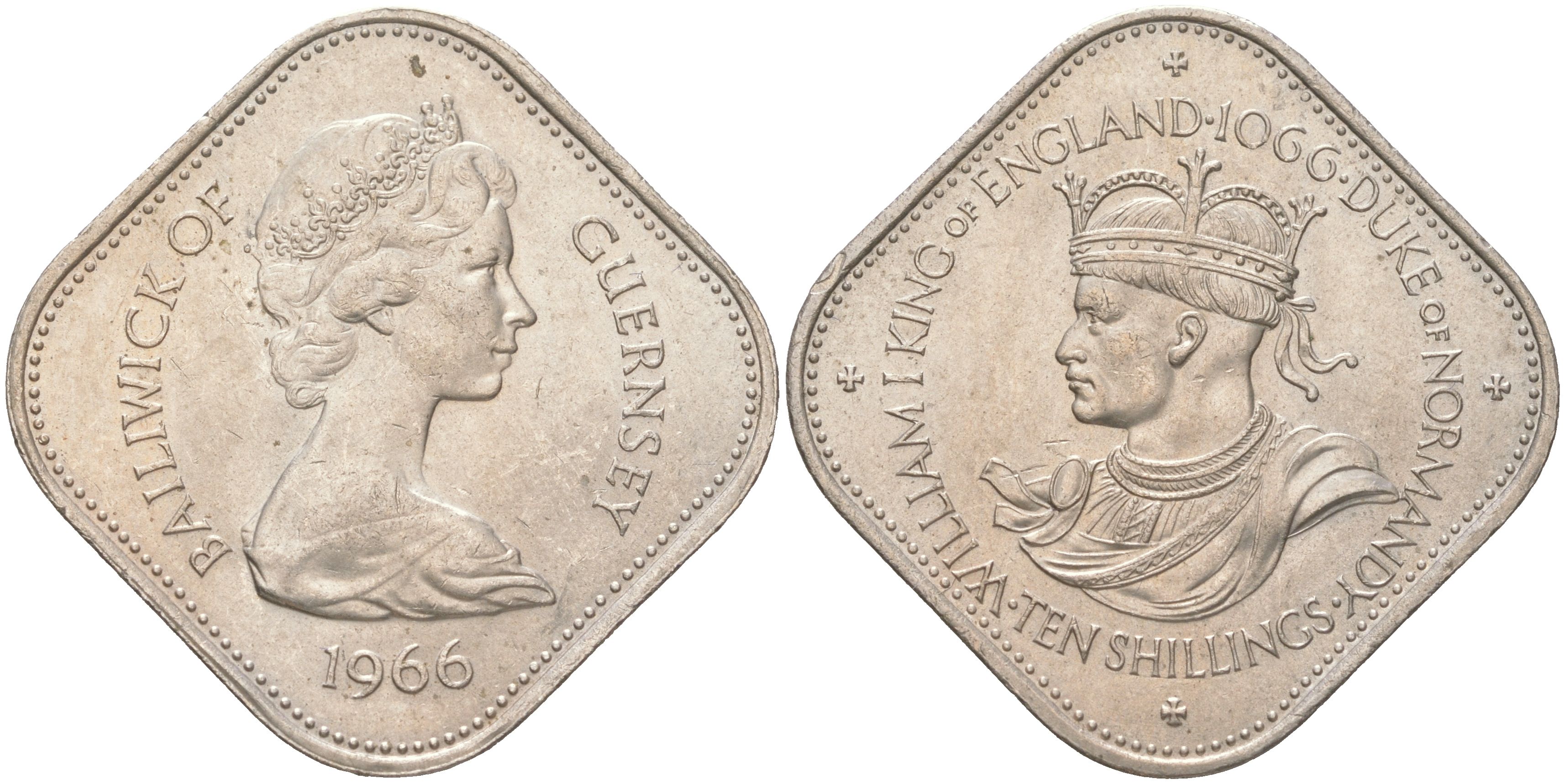 Гернси 10 шиллингов 1966 900 лет Нормандскому завоеванию KM 19 медно-никель UNC 4620-1124