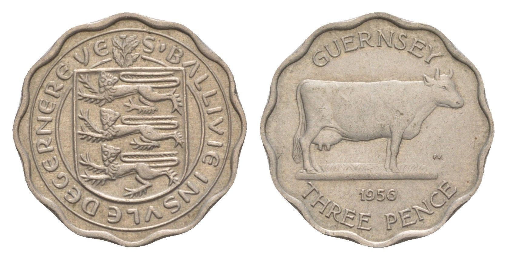 Гернси 3 пенса 1956 год-тип KM 17 медно-никель 4659-565