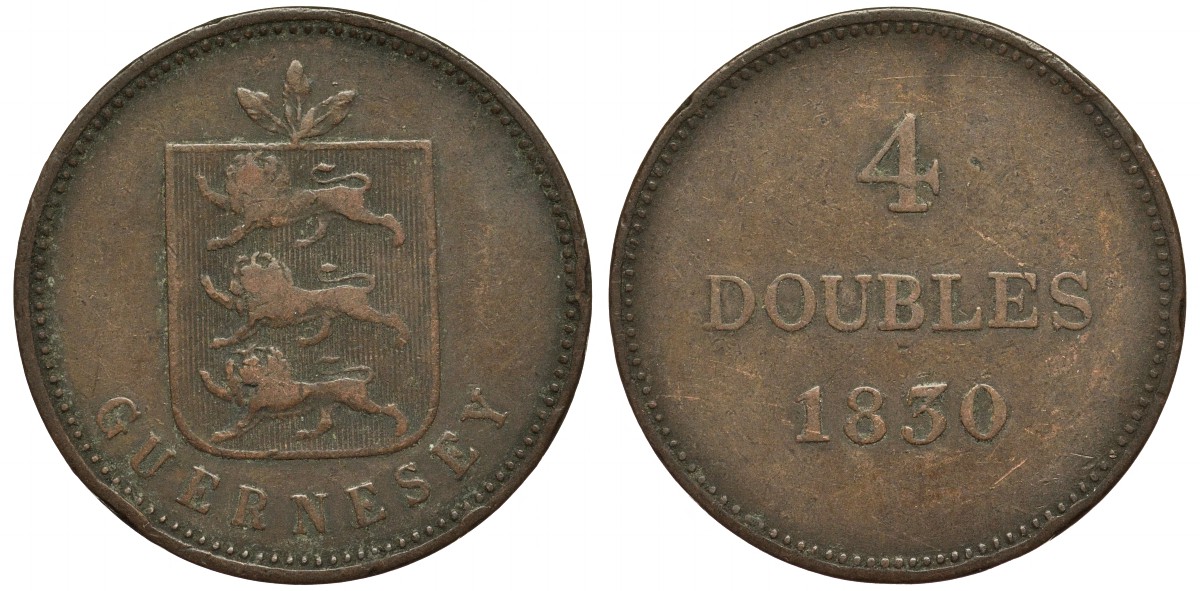 Гернси 4 дабла (дубля) 1830 KM 2 медь 4557-913