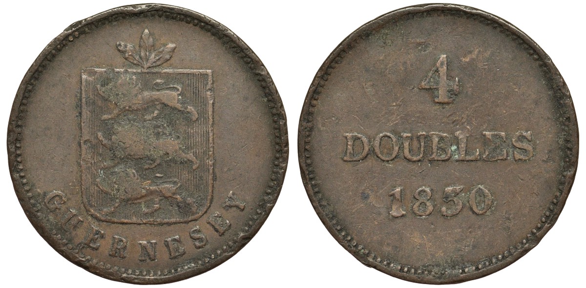 Гернси 4 дабла (дубля) 1830 KM 2 медь 4557-914