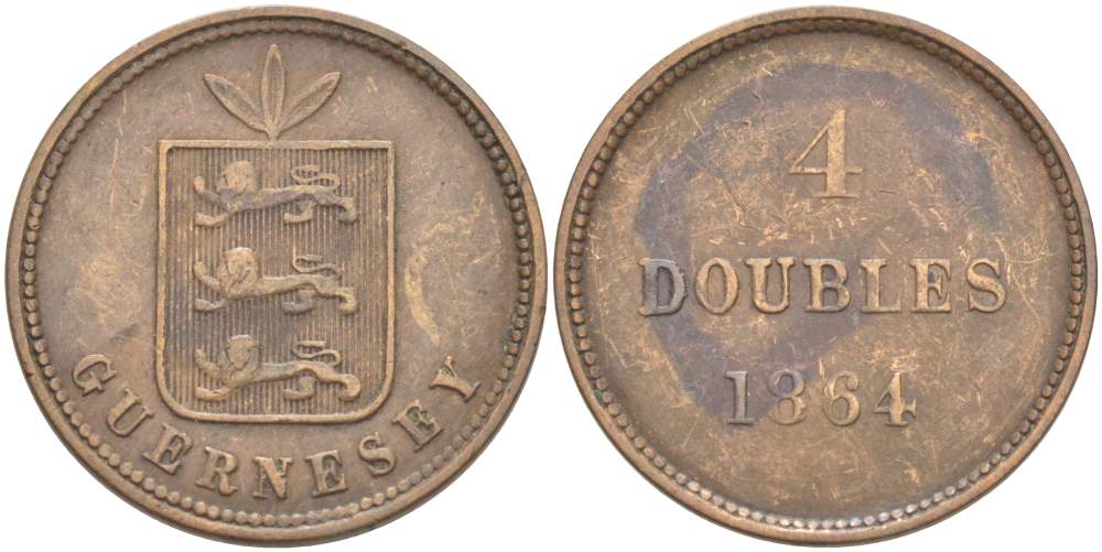 Гернси 4 дабла (дубля) 1864 KM 5 бронза 4517-924