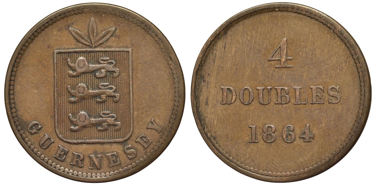 Гернси 4 дабла (дубля) 1864 KM 5 бронза 4556-411