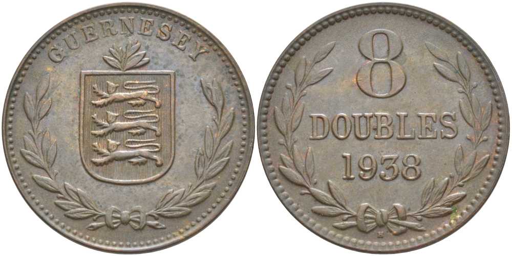 Гернси 8 даблов (дублей) 1938 KM 14 бронза 3996-544
