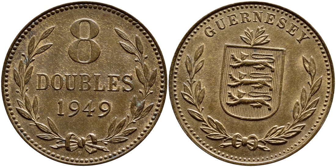 Гернси 8 даблов (дублей) 1949 Н KM 14 бронза UNC 80-124