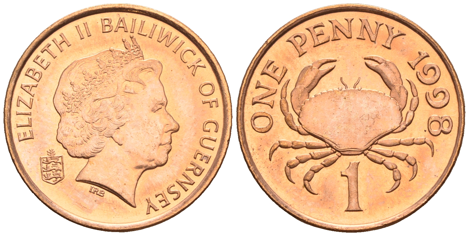 Гернси 1 пенни 1998 краб KM 89 сталь плакированная медью аUNC 4609-362