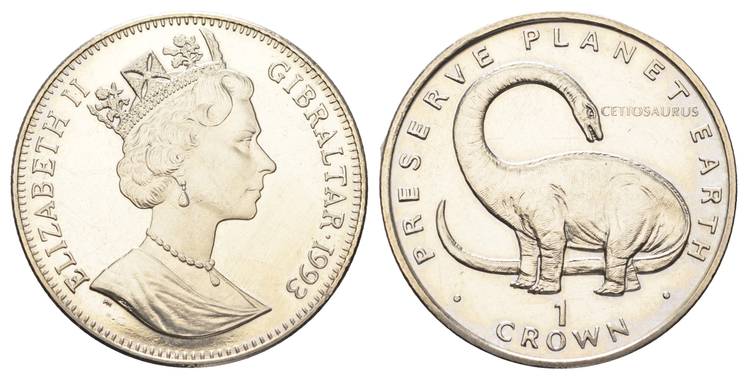 Гибралтар 1 крона 1993 Заповедник планета Земля - Цетиозавр (динозавр) KM 149 медно-никель BU 1524-1625