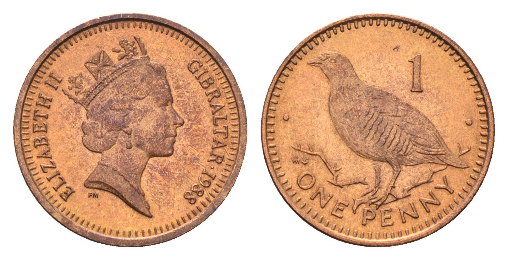 Гибралтар 1 пенни 1988 KM 20 бронза UNC 4668-461